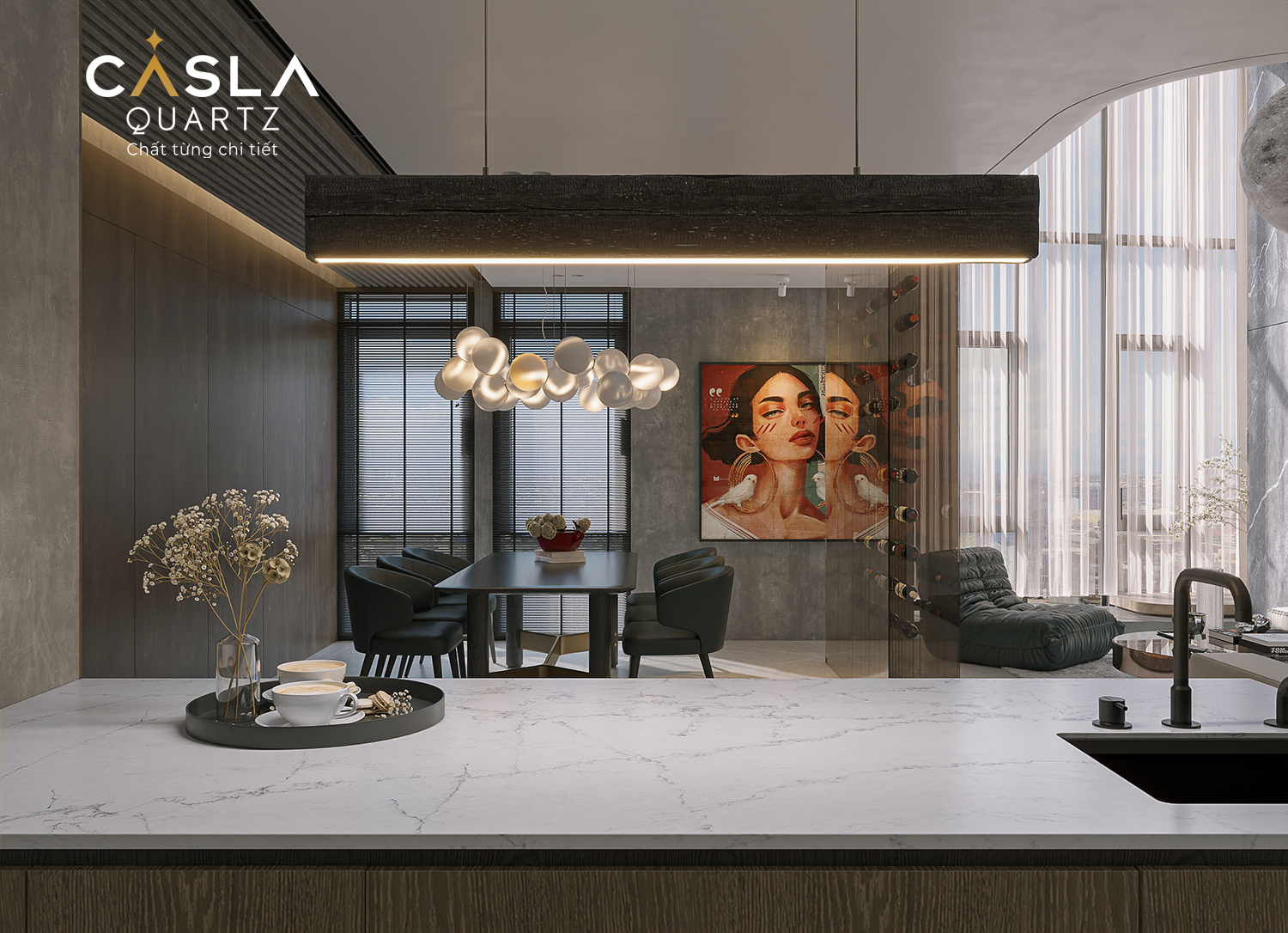 Caslaquartz C4111 – Aurora là lựa chọn lý tưởng cho những công trình kiến trúc và nội thất theo đuổi phong cách sang trọng, thanh lịch. Mẫu đá này dễ dàng kết hợp với nhiều vật liệu khác như gỗ tự nhiên, kim loại, kính… để tạo nên những không gian sống mang tính cá nhân cao: từ mặt bếp, đảo bếp, bàn ăn, cho đến lavabo, quầy lễ tân, ốp tường trang trí, v.v.