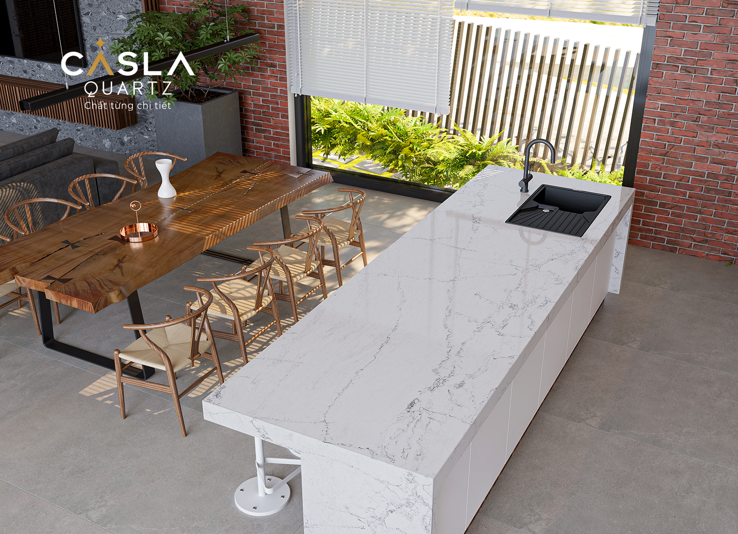 Đá thạch anh nhân tạo Caslaquartz® khi tiếp xúc trực tiếp với ánh sáng mặt trời trong thời gian dài có thể bị biến đổi màu sắc hoặc cong vênh. Vì vậy, bạn không nên đặt sản phẩm tiếp xúc trực tiếp với ánh nắng mặt trời.