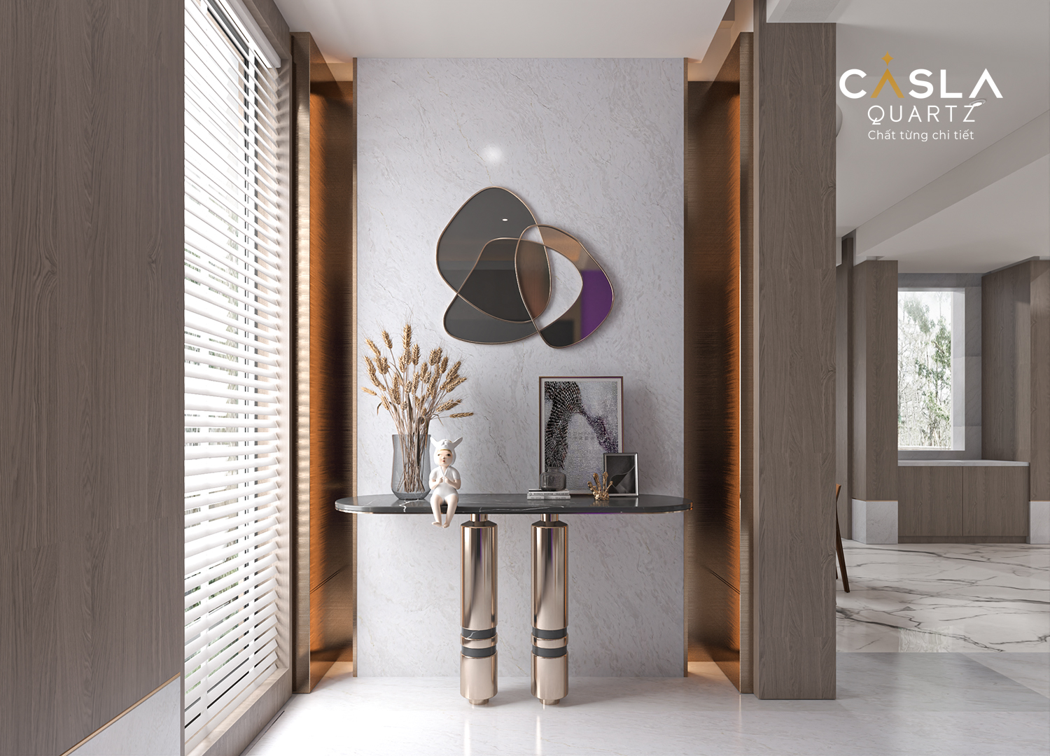 Trong hành trình kiến tạo những không gian sống mang dấu ấn cá nhân, vật liệu nội thất không chỉ đơn thuần là yếu tố hoàn thiện công trình, mà còn trở thành chất liệu truyền cảm hứng thẩm mỹ. Với thiết kế tinh tế, Caslaquartz C4149 – River là hiện thân của vẻ đẹp thanh thoát, nơi sự cân bằng giữa sắc trắng tinh khiết và dải màu xám được thể hiện như một dòng chảy mềm mại, liên tục và đầy sức sống.