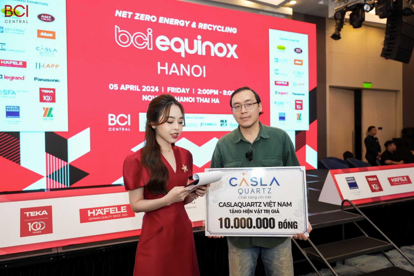 Ngày 05/04/2024 vừa qua, BCI Equinox Hanoi 2024 với chủ đề “Cân bằng Năng lượng & Tái chế – Net Zero Energy & Recycling” đã diễn ra tại Hà Nội với sự tham gia của hơn 350 chuyên gia ngành bất động sản, thiết kế & xây dựng; các kiến trúc sư trẻ và cả sinh viên khoa kiến trúc, nội thất. Sự kiện còn có sự góp mặt của nhiều chuyên gia vật liệu nội thất hàng đầu như Caslaquartz,.. nhằm thảo luận, cập nhật những cải tiến về sản phẩm và công nghệ để kiến tạo những giải pháp xanh cho ngành kiến trúc và xây dựng.