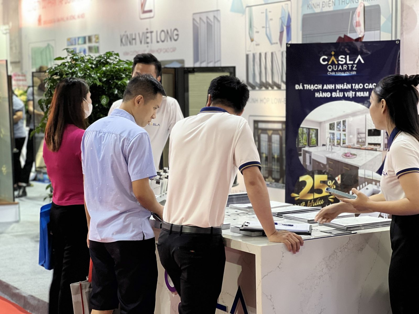 Tại Triển lãm, đội ngũ chuyên gia của CASLAQUARTZ VIỆT NAM sẵn sàng tư vấn và giải đáp mọi thắc mắc của khách hàng. Khách tham quan triển lãm cũng sẽ có cơ hội trực tiếp chiêm ngưỡng và trải nghiệm những sản phẩm chất từng chi tiết, đã chinh phục các thị trường khắt khe như Mỹ, Canada, Úc, châu Âu ...