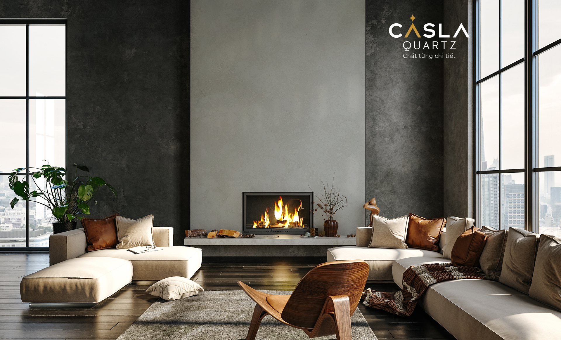 Gam màu của bê tông và xi măng tường chừng như mộc mạc và giản dị nhưng lại có hiệu quả rất lớn về mặt thẩm mỹ, nhất là trong những thiết kế mang phong cách retro và vintage. Tông xám lạnh, bề mặt thô ráp của xi măng tương phản hoàn hảo với độ bóng mịn và đường vân sống động của đá thạch anh nhân tạo. Đây là cặp đôi lý tưởng cho các công trình phong cách brutalist, loft, hoặc studio nghệ thuật – nơi thẩm mỹ công nghiệp được đẩy lên tầm cao mới, bền vững và khác biệt.