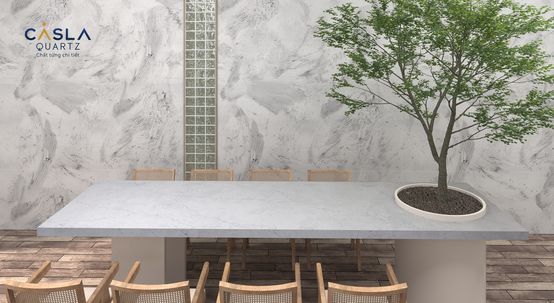 Mỗi loại vật liệu sẽ có những ưu nhược điểm và mức độ phù hợp với không gian tổng thể khác nhau. Việc kết hợp khéo léo giữa các vật liệu sẽ giúp bổ trợ nhau và tạo nên những không gian sống đẹp, tiện nghi, và an toàn. Là sản phẩm sở hữu rất nhiều các tính năng vượt trội so với các vật liệu khác, đá thạch anh nhân tạo cao cấp Caslaquartz luôn là lựa chọn ưu tiên của các khách hàng trong dòng vật liệu đá thạch anh nhân tạo. Đá Caslaquartz đã đạt được hàng loạt các chứng chỉ quốc tế như Chứng chỉ NSF - chứng chỉ về mức độ vệ sinh và an toàn cao nhất của sản phẩm khi tiếp xúc trực tiếp với thực phẩm do Tổ chức vệ sinh quốc tế của Mỹ cấp; chứng chỉ Greenguard - chứng nhận sản phẩm đáp ứng được các yêu cầu của tiêu chuẩn khí thải trong nhà; chứng chỉ Greenguard Gold - chứng nhận sản phẩm đáp ứng được các yêu cầu sử dụng cho các công trình trường học; Chứng chỉ SO 14001:2015 - chứng chỉ về quản lý môi trường; ISO 9001:2015 - chứng chỉ về quản lý chất lượng.
