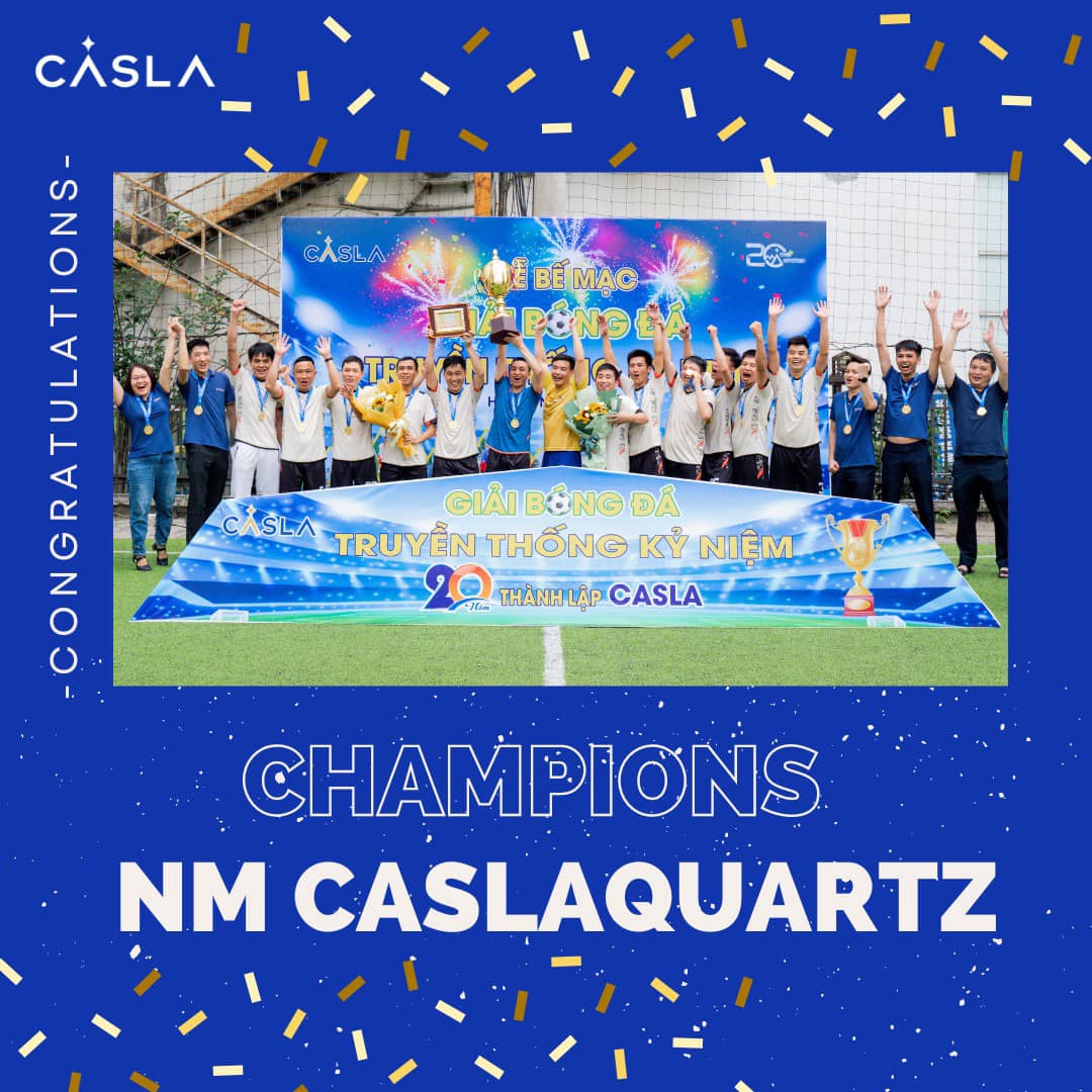 Với lối chơi kiên định, giàu sức mạnh và sức chiến đấu, thể lực vượt trội cùng tuyến cầu thủ đồng đều và nhịp nhàng đã giúp những chàng trai mạnh mẽ của Đội tuyển bóng đá Nhà Máy CaslaQuartz trở thành nhà Vô Địch Giải đấu năm nay.
